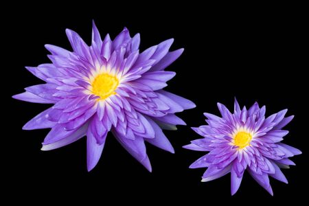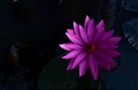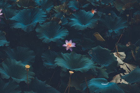 Beautiful Thai Lotus that have been appreciated with dark blue water surface, abstract nature background.
