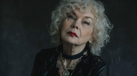 Old White Woman with Blond Curly Hair Goth style Illustration.