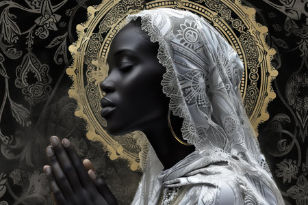 Serene Black catholic nun woman. Sister woman. Generate Ai