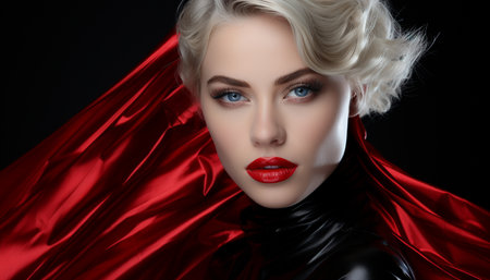 A beautiful young woman with blonde hair exudes elegance and sensuality generated by artificial intellingence