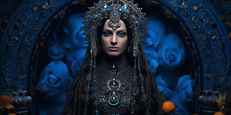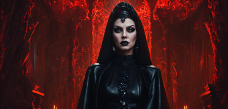 Beautiful Extremely Evil wicked satanic goth black beautiful gothic woman. ai generative.