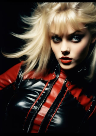 Beautiful blonde woman in a black leather jacket. Vector illustration.