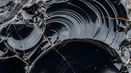 Glossy layered black slate texture with distinctive veins for design