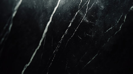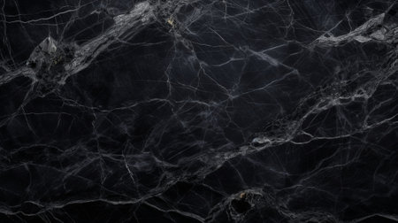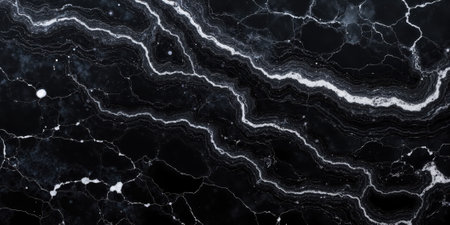 Black marble background with elegant veins, perfect for creating luxurious and sophisticated designs or as an element in high-end decoration projects. The black color adds sophistication to the design while highlighting the natural patterns of white lines on the dark stone surface. It is suitable for various applications such as wallpaper, website backgrounds, print materials, fashion product packaging, and more. --chaos 30 --ar 16:9 --v 6.1 Job ID: 9532b85a-977b-463b-96e8-729a46dd0269