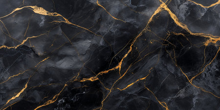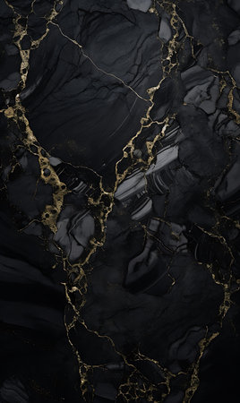 Intricate patterns unfold in this black marble texture, enhanced by striking golden veins that run through the surface creating a sophisticated, luxurious aesthetic.
