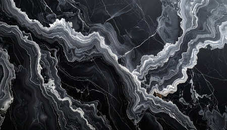 Close up of black and white marble texture resembling natural landscape