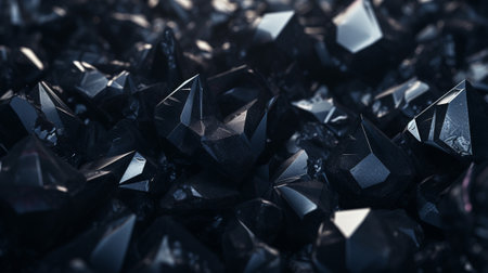 An exquisite arrangement of black crystals showcasing various textures and sharp edges, perfect for artistic displays, educational content, and design projects.