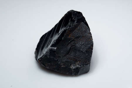 Natural black obsidian stone on background