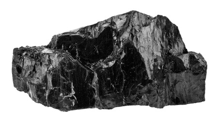 Black piece of coal on a white background close up isolated