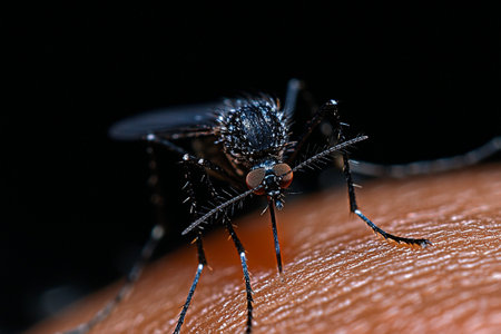 mosquito on human skin in the dark