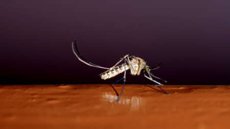 Macro Aedes aegypti Mosquito. Close up a Mosquito sucking human blood