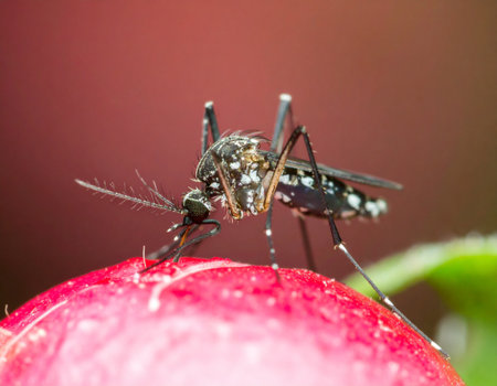 Aedes mosquito sucking blood on skin