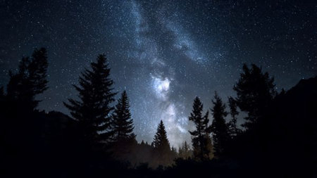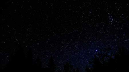 Night sky with stars and milky way over coniferous forest