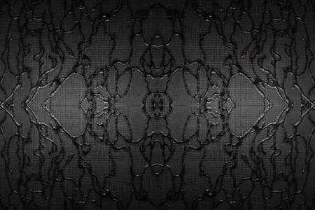 Swirls of fractal lines on black backround. Creative digital art. Silk symmetry seamless pattern series.