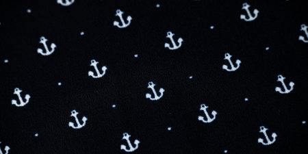 Dark navy blue textile with anchors elements. Textile pattern.
