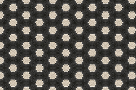 Seamless texture with 3D rendering abstract fractal beige pattern on a black background for fabric design