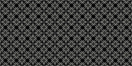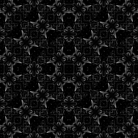 Digital art technique complex intricate modern ornate check style seamless pattern mosaic in black and white colors.