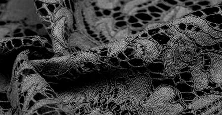 black lace fabric, sexy retro negligee material. Vintage lingerie ornament. background texture, pattern.