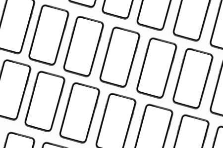 Pattern of smartphones with mockup isolated on white background.