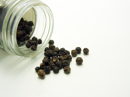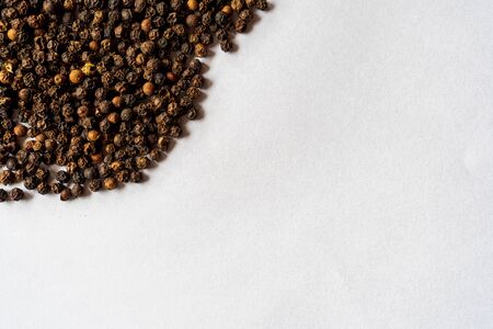 fragrant black pepper on white acrylic background.