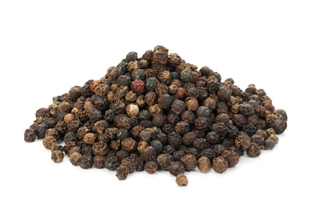 Heap of peppercorns on white background