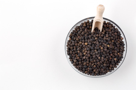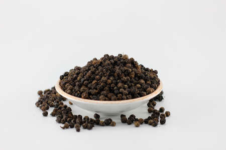 Black pepper in a bowl with white background