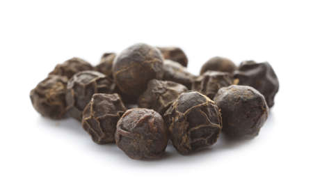 Peas of black allspice close-up on a white background.