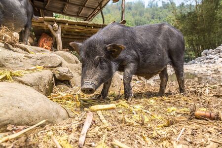 Black pig in Sapa, Lao Cai, Vietnam in a summer day