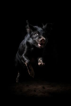 portrait of a black boar closeup of a beautiful and bright