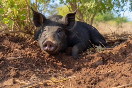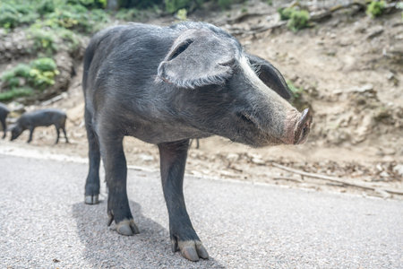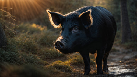 black pig searching for truffles