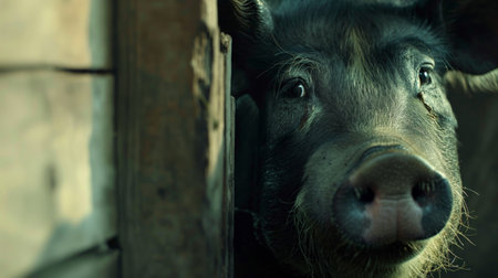 pig looks into the frame close-up