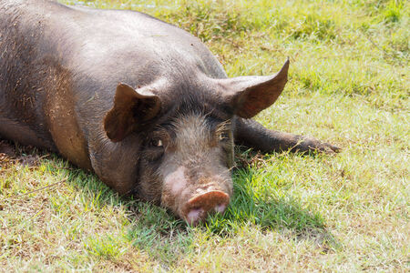 Pig sleep at pig breeding farm in nature