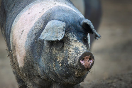 portrait of Romanian Saddleback, a pig breed from Transylvania