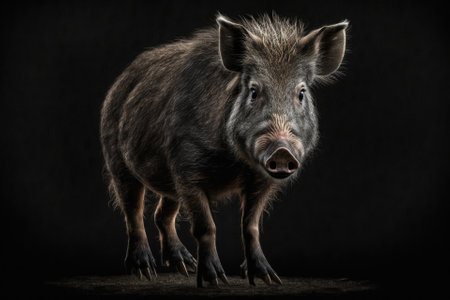 wild boar on a black background. Generative AI