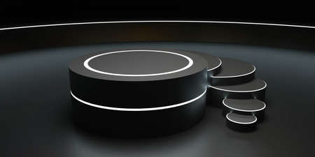 Black round podium on a dark background. 3d render illustration.