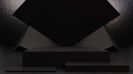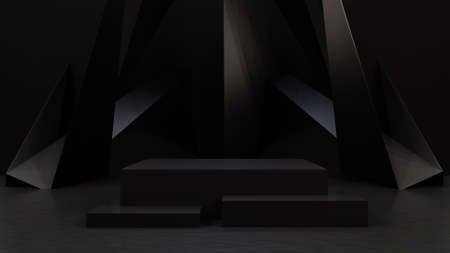 Dark geometric background for cosmetics, 3D rendering. Abstract background, stage layout, geometric shape of the podium for product demonstrations.