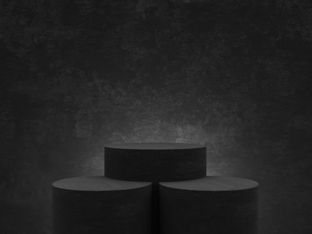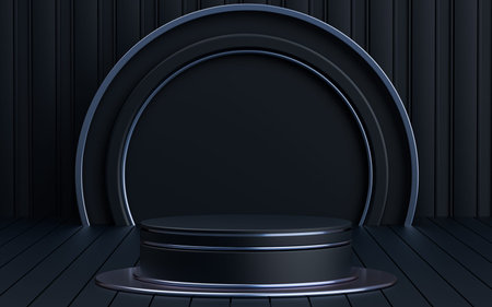black abstract futuristic showcase platform mockup empty dark room cylinder stand podium 3d render illustration