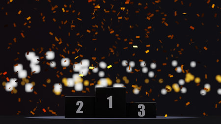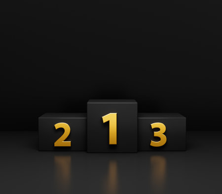 Winners podium 1 2 3 Gold podium on dark abstract look background empty space Platform 3d illustration