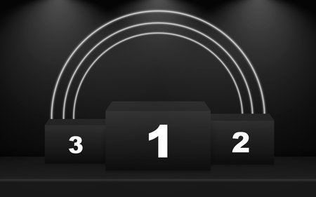 Abstract background with winner podium. Digital dark theme. 3d rendering