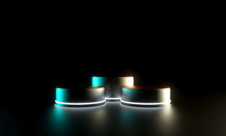 Black round podium illuminated with spotlight. Award ceremony concept. 3D Rendering