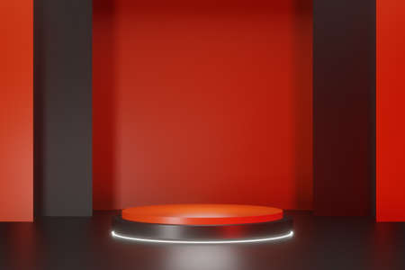 Red black cylinder podium stage background. 3D illustration rendering.