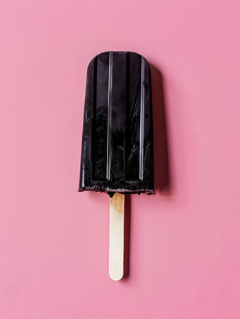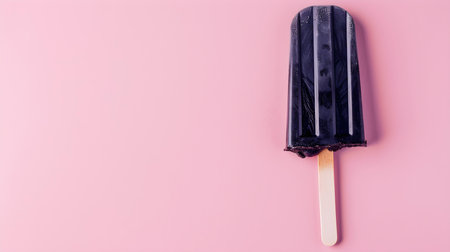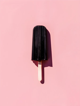 Black popsicle on a summery pink background with copy space