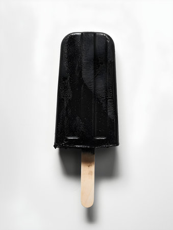 Black popsicle on a white background with copy space