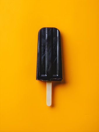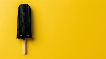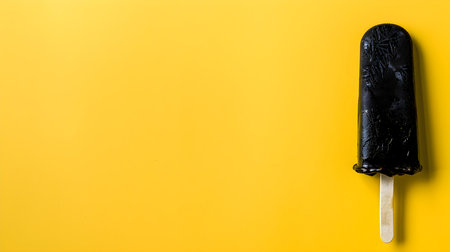 Black Popsicle on a summery yellow background with copy space