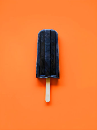 Black Popsicle on a summery orange background with copy space
