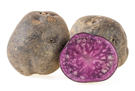 Concept of unusual vegetable - purple potato vegetable, isolated on white background