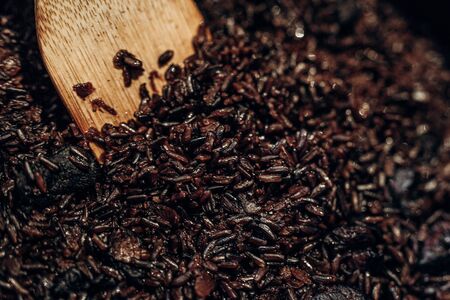 Black rice is mixed. Close-up. Selective focus