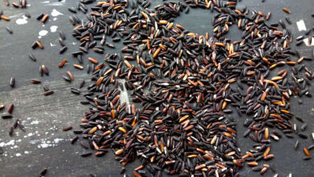 black rice scattered from sack