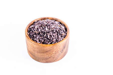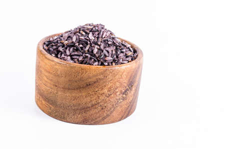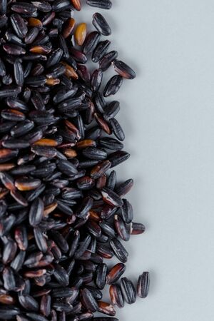 Black rice, also known as purple rice or forbidden rice. Organic unpolished black rice grains as a source of complex carbohydrates and high in antioxidants.