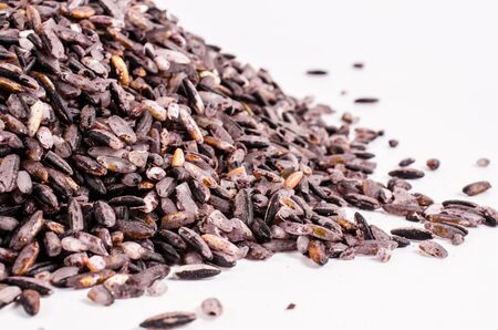 raw fresh black rice on a white background.